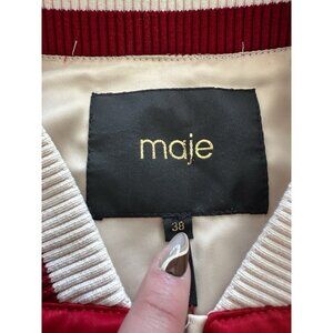Maje Red Satin Floral Applique Bomber Jacket Size 38