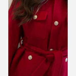 Maje Red Wool coat with Stand-Up Collar and belt!