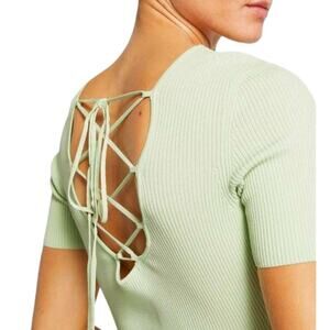 Inject a spring palette into your everday wardrobe with Maje. In this midi dress, a pastel green washes over the rib-knit construction, while the tie-up detail to the back adds a little detail to what is otherwise a pared-back option.