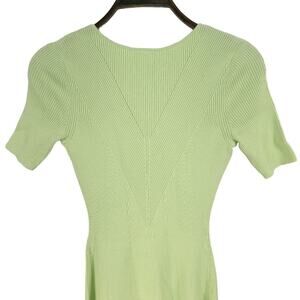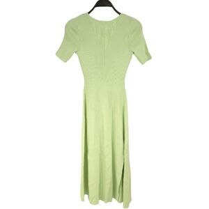 Maje Ruche Vert Midi Dress in a light green pastel color.