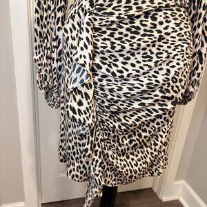 Maje Ricata Ruffled Leopard Print Crepe Mini Dress, Sz. 36 NWT
