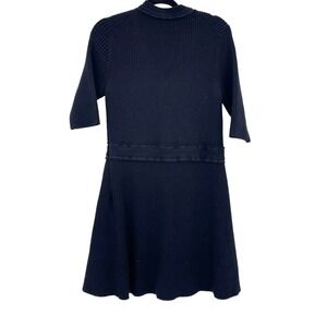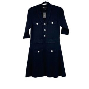Maje Rimosala Rib-Knit Mini Dress Banded waist Black Women's Size 8 NWT