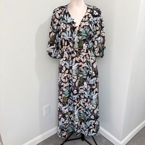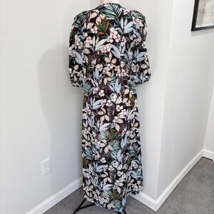 Maje Ringle Dress Size Medium Black Jungle Print Smocked Button Up Tiger Floral