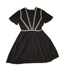 Maje Risea Unique Black & White Dress, Fit & Flare Embroidered Trim Size Maje 2, which translates to a M (6-8)