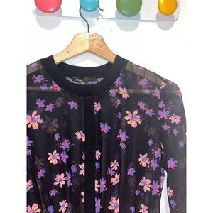 Lightweight sheer fabric and pleated skirt add elegance. Perfect for daytime or evening wear with a floral design that exudes charm.