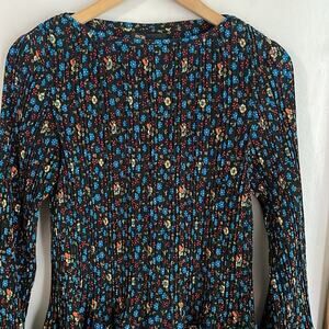 Combining a pastoral-inspired print of disty florals with a pleated bodice and blouson sleeves, Maje's romantic shift dress adopts a bohemian spirit.