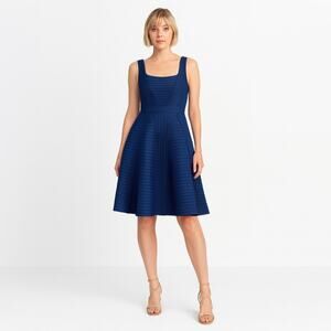 The Maje Rodez Fit & Flare Knit Dress perfectly combines structure and softness for a modern feminine silhouette. Crafted from a technical ribbed knit, this sculpted design contours the body with strategically placed panels and a full flared skirt for beautiful movement.