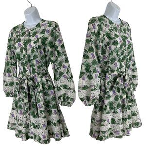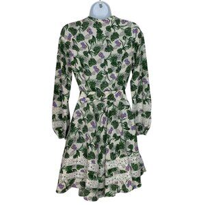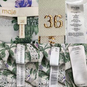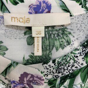 Maje Roman Floral Print Woven Mini Dress 36 US/4 Long Sleeve Lace Insert Belted