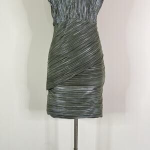 Maje | Romea Metallic Green Plisse Bandage V Neck Designer Mini Dress 38 Medium