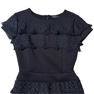 Maje Romelie Mini Sheath Dress. Cap cut sleeve. Structured silhouette. Exposed back zipper. Tonal stitching.