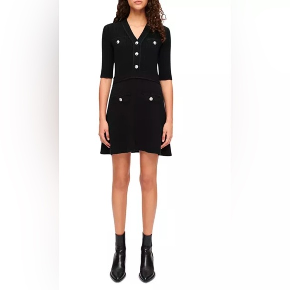 This elegant black dress features a stylish button-front design, perfect for any occasion. Its sleek silhouette and classic color make it a versatile addition to your wardrobe.