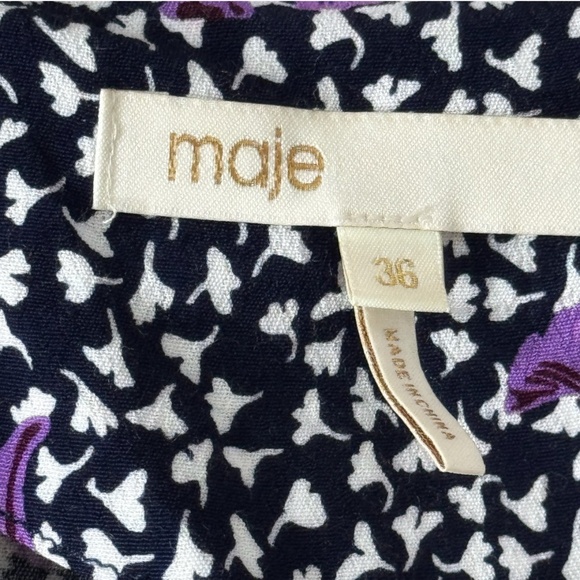 Maje Romper Black White Purple Print Button Front Collar Pockets One Piece Short