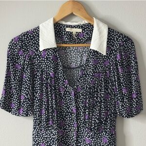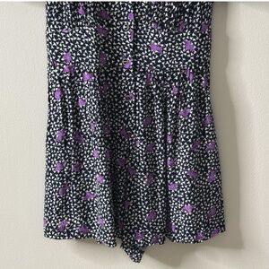 Maje Romper Black White Purple Print Button Front Collar Pockets One Piece Shorts Romper Size Small