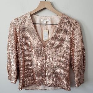 Maje Rose Gold Sequin Vneck Blouse Top Sz small