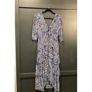 Maje Rufflani Ruffled 3/4 sleeve blue Midi Dress size 36 US 2 / 4