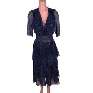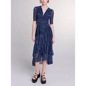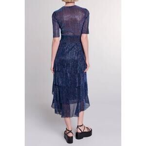 Maje Ruffled maxi dress Metallic Shimmer Tiered Draped size 3/ M evening event