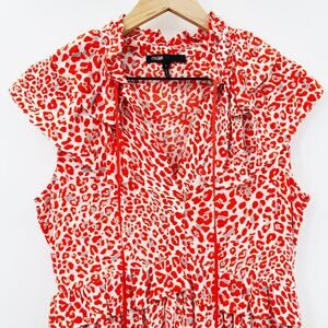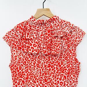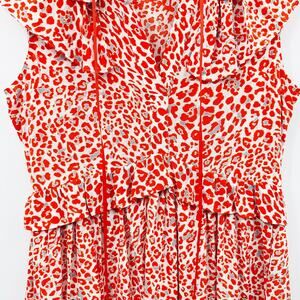 Maje Rutti Ruffled Leopard-Print Mini Dress in Red Orange Size Small