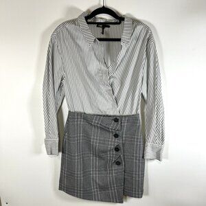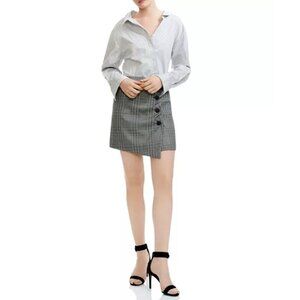 Maje Shirt Skirt Dress Gray And Black Plaid Women’s Size 2/medium Office Classy