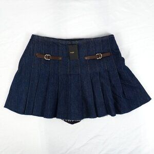 Maje Short Denim Pleated Skirt with Lining in Marine Blue Size 36 (NWT)
