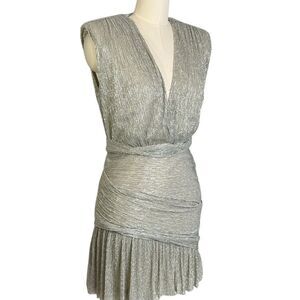 Maje Short Metallic V Neck Mini Dress | Size 4