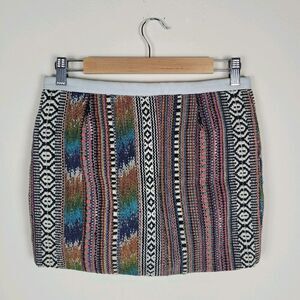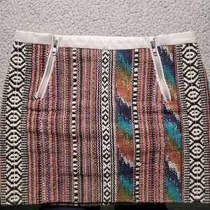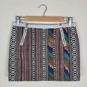 Maje Skirt EU36 Small Multicolor Jacquard Textured Short Mini Boho Leather Trim