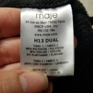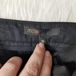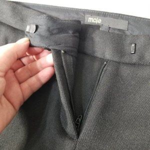 Maje Solid Black Slim Fit Lamb Leather Trim Mid-Rise Dress Pants Medium