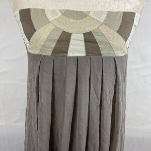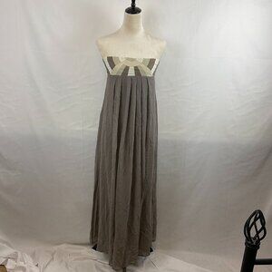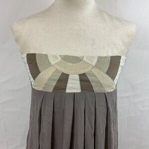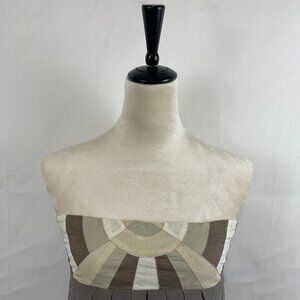 Maje Strapless Dress S Taupe White Tan Patchwork Detail Pleated Gathered Back