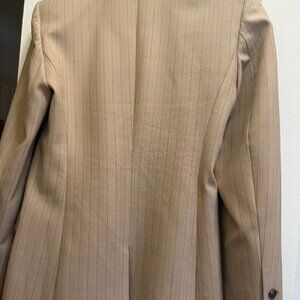 I have worn this pant suit once and it is like new! There are no marks, tears or rips anywhere on the clothing. Comes from a smoke and pet free home.