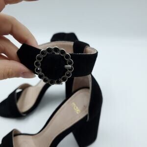 Like new. French size 36 or US 5. Black suede with jewel buckle. Black heel. Thin strap across the top.