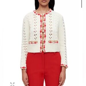 Maje Monloup Decorative Knit Cardigan Alpaca Wool Blend Sweater Fairy Pompoms