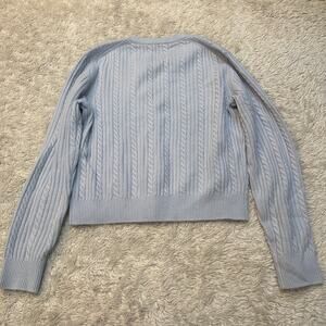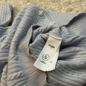 Maje Sz 3 US L Wool Cashmere Baby Blue Cable Knit Button Up Cardigan Sweater