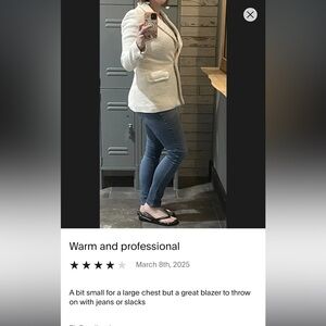 Chic cream jacket with textured fabric. Ideal for layering.