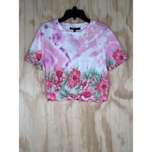 Features: Ring hardware tie dye floral print cropped silhouette NWT lightweight cotton