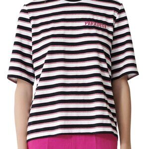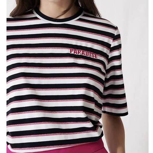 Maje Tiffany Back-Zip Metallic-Stripe Tee