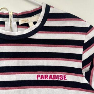"Paradise" embroidered at left chest.