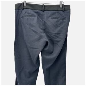 Excellent pre-owned condition. These pants feature a classic fit, mid-rise waist, and tapered leg style. The navy wool blend material with contrast black side stripe and red piping accents provides both comfort and style. The zip and hook & eye closure, along with pockets, add convenience to the pants.