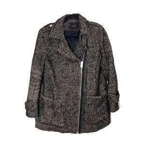 Maje Tweed Jacket Women’s 38 Wool Blend Black Moto