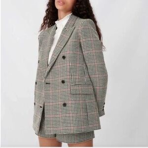 Maje Voldita Double-breasted Check Jacket in Multicolor