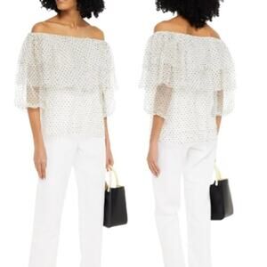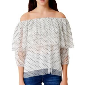 The Parisian-based brand perfects modern romance with this confection of a top with flounced tiers of sheer, dotted mesh cut to show off pretty shoulders. Off-the-shoulder neck Three-quarter sleeves with elastic cuffs 100% polyester Hand wash, line dry Imported Individualist