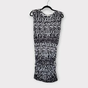 Maje Ayia Black White Tan Printed Fitted Dress Sleeveless