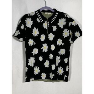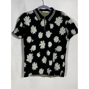 Maje Women's Black Daisy Print Jacquard Quarter Zip Polo Shirt Size 1 Sm…