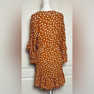 Fun Flirty Polka Dot Ruffles Bell Sleeves Faux Wrap Feminine Girly Breezy Flowy Vacation Date Night Office Girls Night Wedding Guest