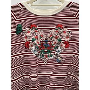 Maje Womens Marco Sweater Floral Embroidered Heart Striped Crewneck Red Size 2
