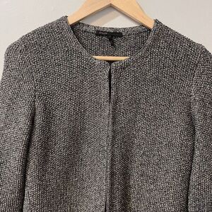 Maje Womens Open Front Jacket Size 1 In Tweed Silver Metallic Thread
