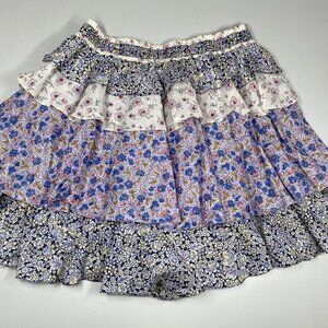 Maje Women's Skort Multicolor Size S Floral Ruffle Tiered Cotton Mini Skirt