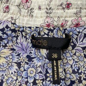 Feminine and playful, this Maje floral skort features a ruffled, tiered mini skirt design with built-in shorts for comfort and coverage. Crafted from lightweight cotton in a vibrant multicolor floral print, this piece is perfect for summer outings, vacations, or casual-chic looks.