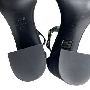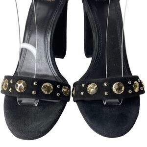 Maje Womens Studded Suede Black Gold Block Heels Sandals Size EU 39 US 8.5- 9