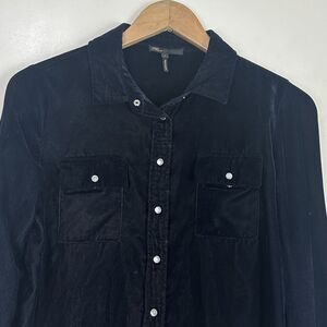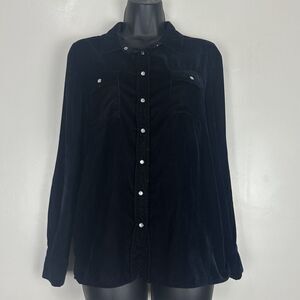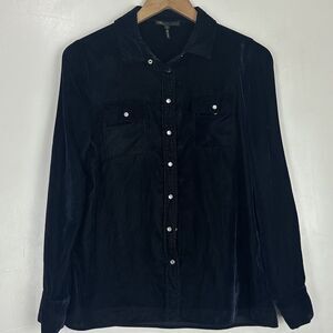 Maje Women's Velvet Snap Pearl Button Long sleeve Shirt Navy Blue Size 2 US M
