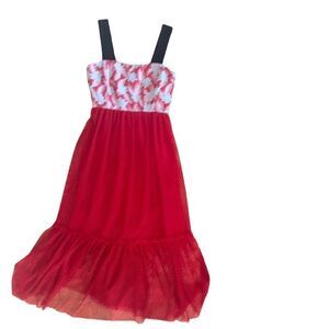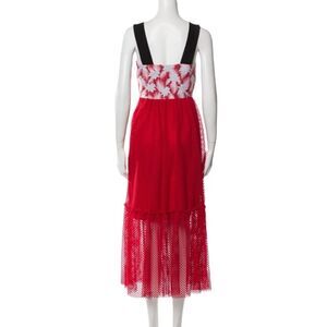 Maje Women's Midi Red Floral Print Dress with Mesh Skirt Size 1