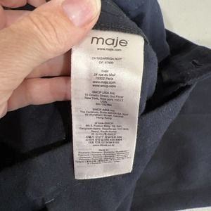 Introducing a pair of stylish and comfortable pants from Maje. These pants are perfect for various occasions such as travel, workwear, formal or business events. The pants come in a beautiful dark navy blue color and feature a solid pattern with a tapered leg style and a flat front.